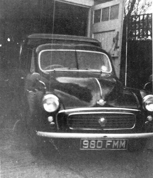 Her next car a Morris Minor 1000, WBD 314 with a hot engine but we never told her.