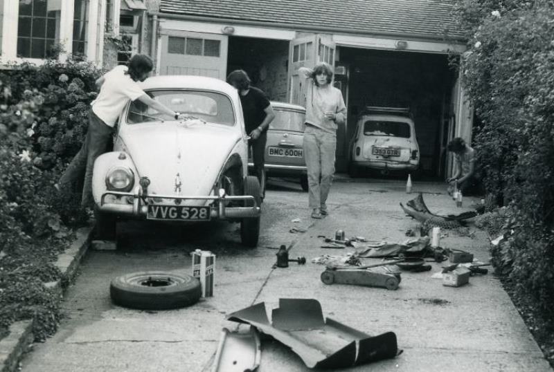 VW we bough for a fiver, John, Franco & Sally. Franco's concours Mini in the garage.