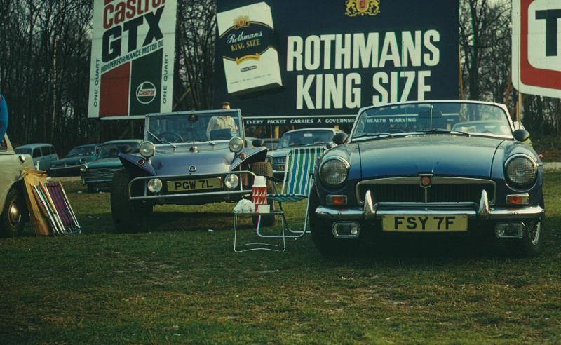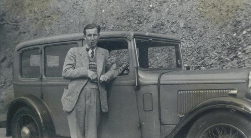 Billy stowed away in the boot of the Wolseley Hornet on the left.